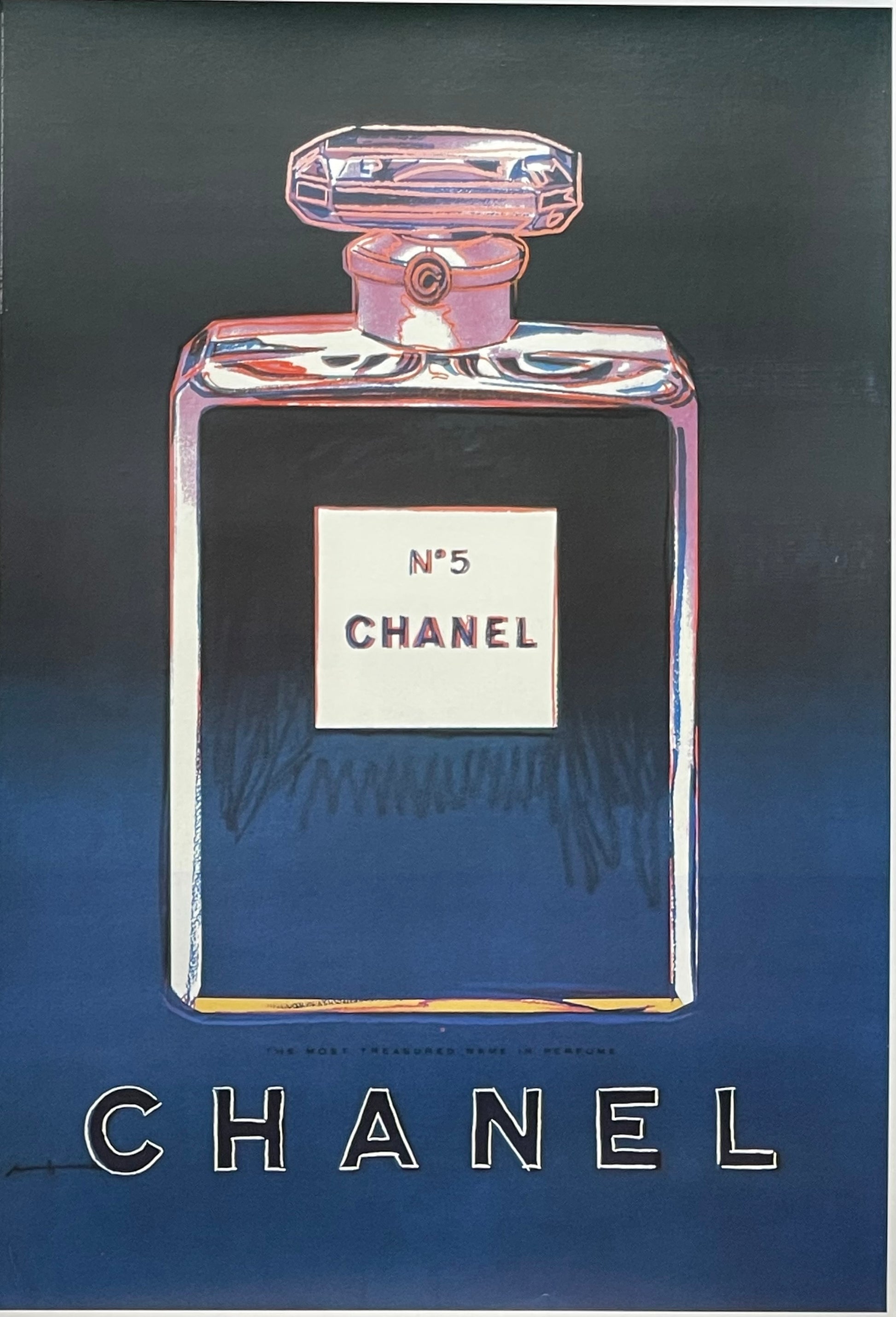 The famous No 5. bottle was used in a series of silkscreens designed by Andy Warhol, for Chanel, in 1985. However the company did not use the images until 1997, 10 years after the artists death. The set of 4 coloured posters with two-toned background were used all over France to advertise the iconic fragrance.