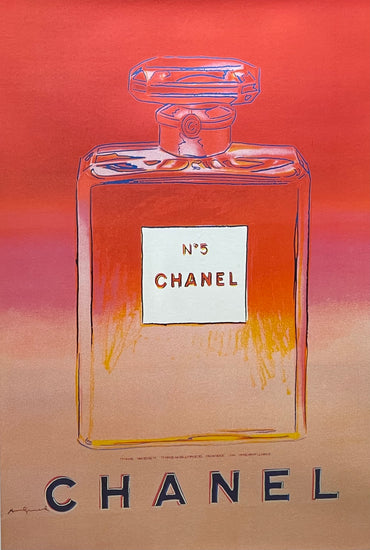 The famous No 5. bottle was used in a series of silkscreens designed by Andy Warhol, for Chanel, in 1985. However the company did not use the images until 1997, 10 years after the artists death. The set of 4 coloured posters with two-toned background were used all over France to advertise the iconic fragrance.