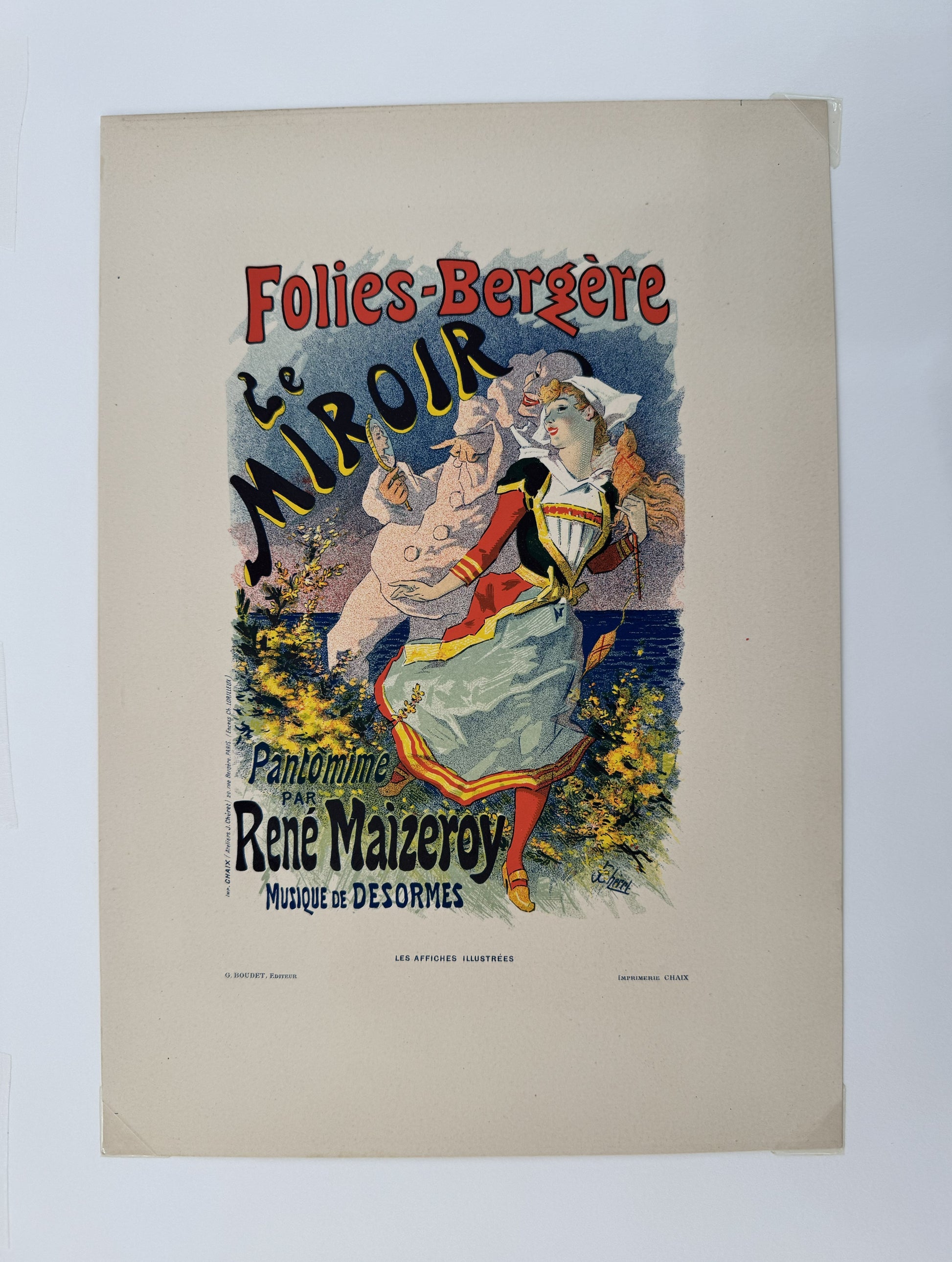 The Les Maitres de L'Áffiche Plate #157: reproduction of the original 1891 Jules Chéret poster promoting the premiere of René Maizeroy’s pantomime, Le Miroir, in Paris on February 6, 1892 at the Folies Bergère.