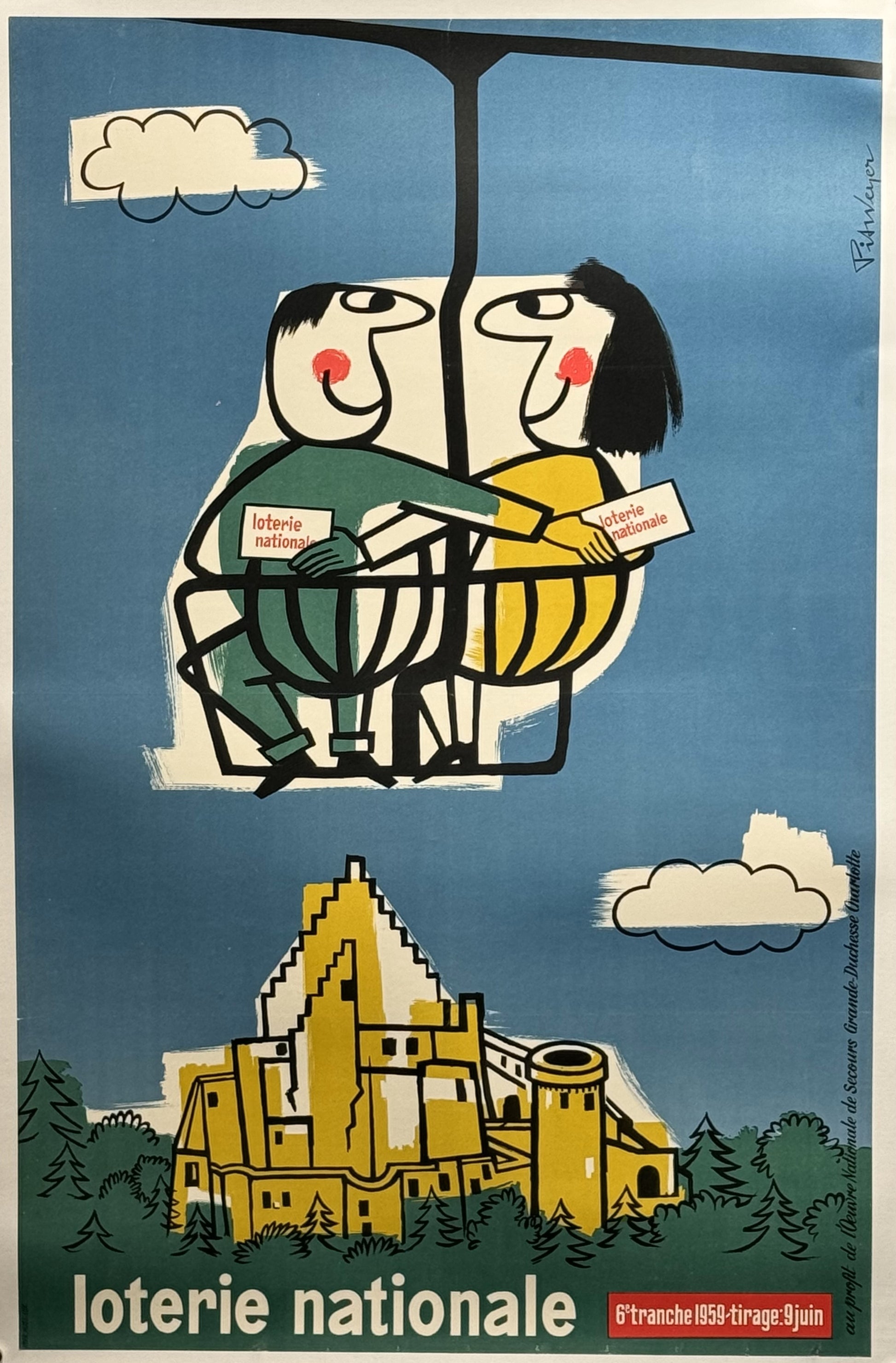 Relive the excitement of your vacation with the Loterie Nationale chairlift poster. Hang this unique poster to remind you of that wonderful holiday in a playful and quirky way. Place it in your home to add a touch of fun and nostalgia to any room. It's sure to bring a smile to your face every time you see it.