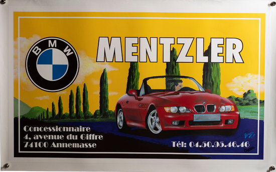 This bright poster, advertising for a BMW dealer in Annemasse, a town in eastern France, will add the perfect touch of pizzazz to any room, taking your décor for a thrilling ride. Rev your engine and get ready for some serious style!