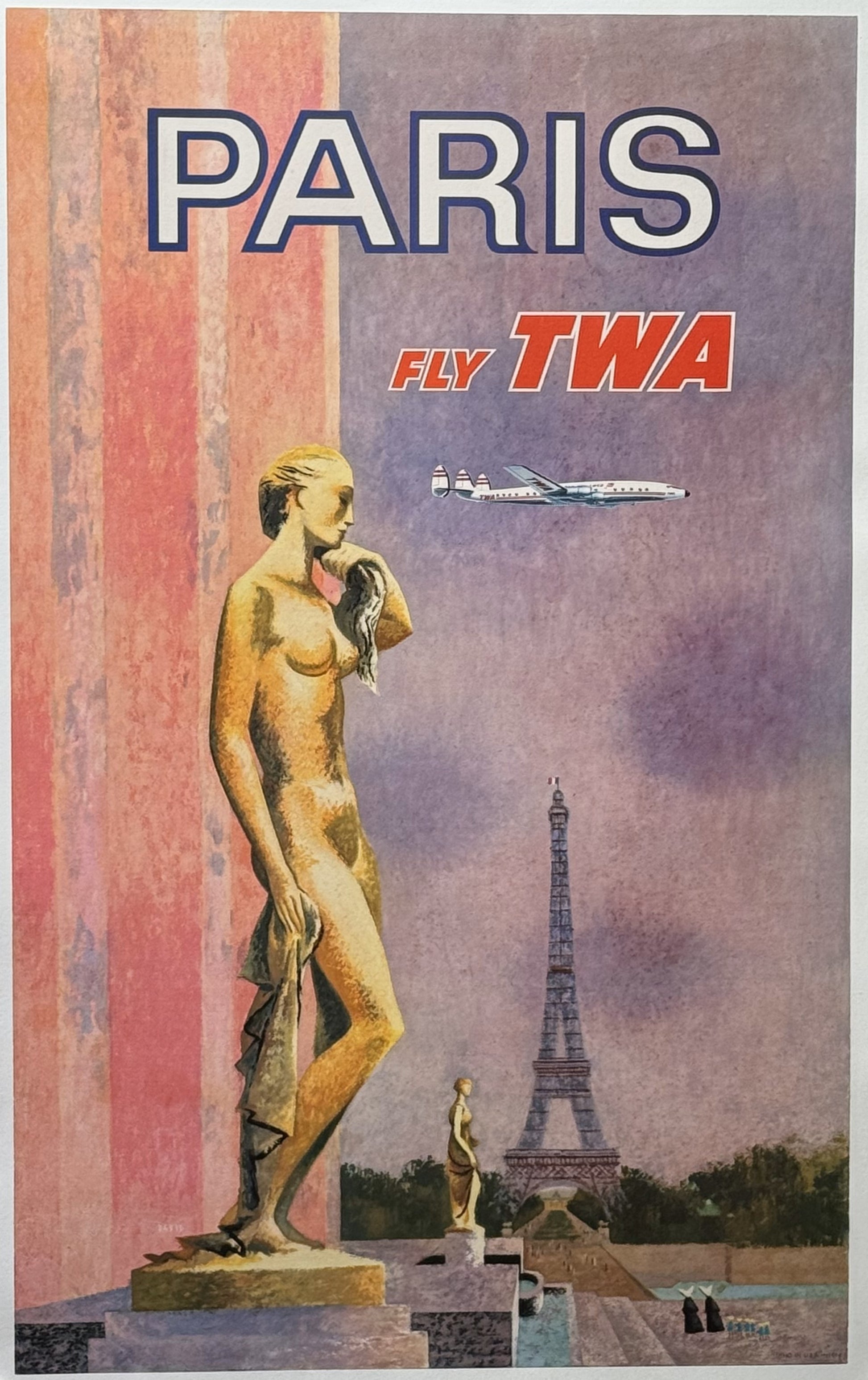 As always, the TWA jet appears soaring above the tower. To quote historynet.com "During the Golden Age of Air Travel, these posters let you fly around the world without leaving the ground"