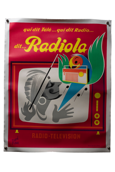 The Radiola parrot, but this time advertising TV. Another bright Ravo classic.