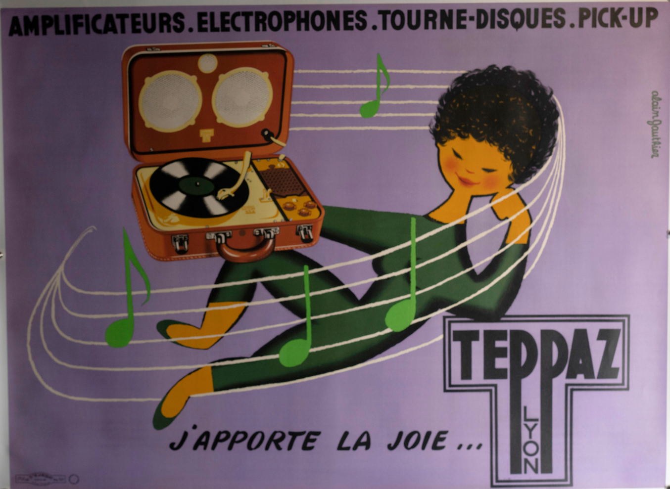 Tune up your style with this Teppaz Lyon poster for record players! A fun horizontal piece in a rarely seen shade of purple.